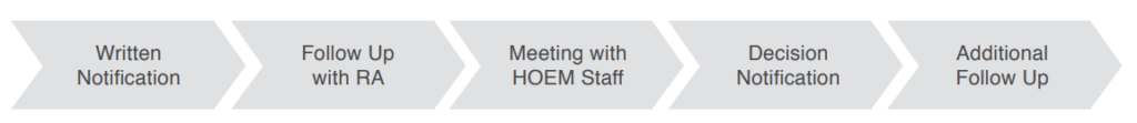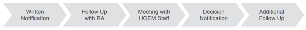 The HOEMie who broke the HOEM Code will receive an email from the responding HOEM staff member within 3 business days after the incident, requesting a meeting that must occur within 48 hours of the email being sent. Should a HOEMie not willingly schedule a meeting with the HOEM staff member within the 48 hours, key card and turnstile access will be revoked until a meeting is scheduled through the HOEM Services Desk. Should the student not show up for the scheduled meeting, a decision will be made and the HOEMie notified without their participation in the process. Communication of decisions related to the incident will be sent out by the HOEM staff member within 5 business days of meeting with the HOEMie.
